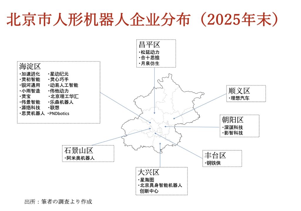 筆者の調査によると、2025年末北京のヒューマノイド企業が26社以上あり、その多くが清華大学や北京大学が所在する海淀区に所在している。筆者らが2026年1月12日から1月14日の間に北京でヒューマノイド企業6社訪問し、聞き込み調査を行ったところ、6社とも2026年中にIPOを企画しているという。