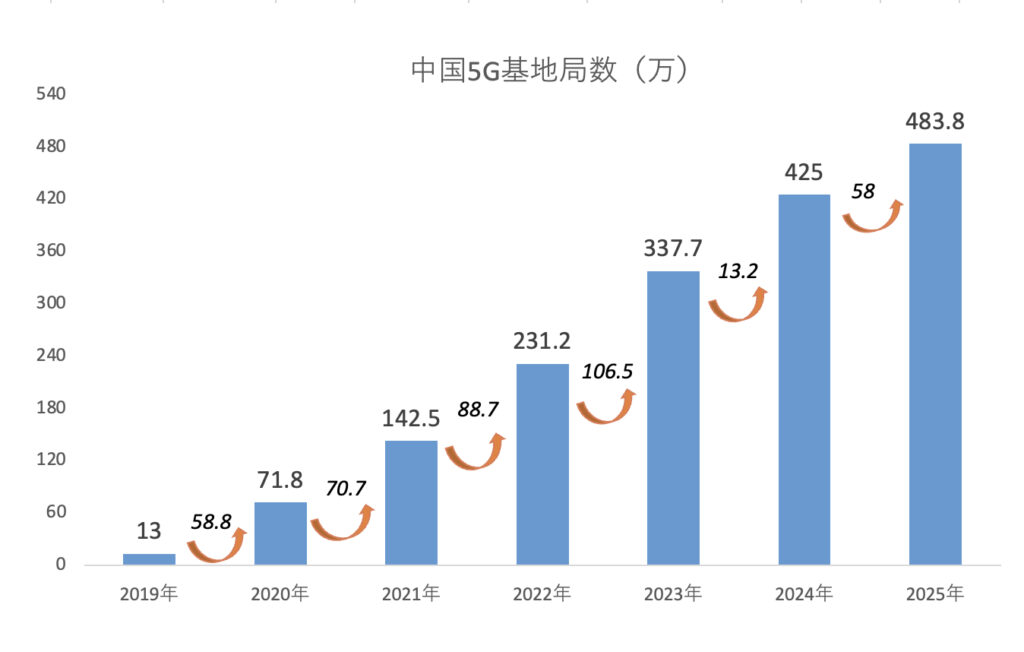 中国工業情報化部(MIIT)が1月28日発表したデータによると、2025年末中国の5G基地局が483.8万基、平均1万人の5G基地局保有が34.4基になった。同期における5G-A*のカバーエリアは330の市(全国694市)に拡大している。全国光ファイバーネットワークは総延べ7,499万キロメートルに達した。3大通信事業者が外部一般に提供するデータセンターのラック数は93.8万台に達し、2025年には10.8万台急増した。